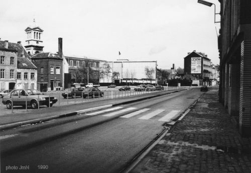 En décembre 2009, nous avons jeté un coup d’œil sur le côté droit (vers l’Hôtel de Ville) de la rue Sécheval et parlé de ses commerces. Depuis leur disparition, cette zone à cédé la place à un vaste parking pouvant servir également de terrain de jeux pour les enfants du quartier et bien utile au personnel de Ste Claire. Cet espace, maintenant arboré a notablement amélioré l’endroit, l’ancien garage est remplacé par une belle habitation multiple et d’autres (à gauche sur la photo) ont pris la place des masures, qui avaient fait leur tempsEn 1990 il était encore possible d’apercevoir l’église St Remacle. Sources : Internet et souvenirs personnels .